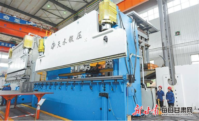 天水锻压机床(集团)有限公司工人在车间调试大型智能数控设备。近年来,该公司加强技术创新,先后承担并完成了多项国家重大科技项目,以科技创新推动企业高质量发展,今年第一季度完成产值同比增长8.8%。新甘肃·甘肃日报通讯员 孙镇