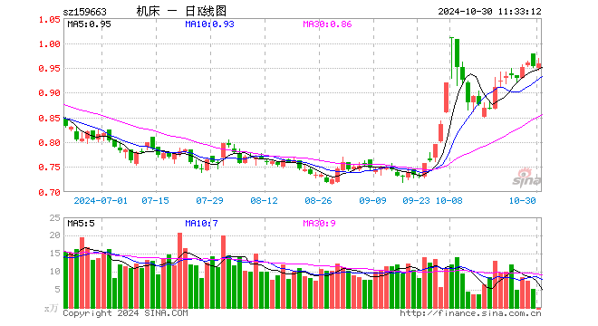 10月30日,截止午间收盘,机床ETF(159663)涨0.52%,报0.958元,成交额623.83万元。机床ETF(159663)重仓股方面,华工科技截止午盘涨3.34%,大族激光涨2.60%,豪迈科技跌1.00%,厦门钨业跌1.02%,汇川技术跌1.51%,中航高科涨2.78%,柏楚电子跌0.73%,江特电机跌1.13%,创世纪涨1.44%,绿的谐波涨0.81%。