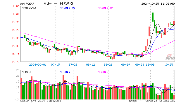 10月25日,截止午间收盘,机床ETF(159663)涨2.48%,报0.952元,成交额287.10万元。机床ETF(159663)重仓股方面,华工科技截止午盘涨3.98%,大族激光涨1.65%,豪迈科技跌1.26%,厦门钨业涨2.86%,中航高科跌0.66%,汇川技术涨2.56%,柏楚电子涨2.17%,江特电机涨5.94%,华明装备涨0.83%,创世纪涨2.38%。