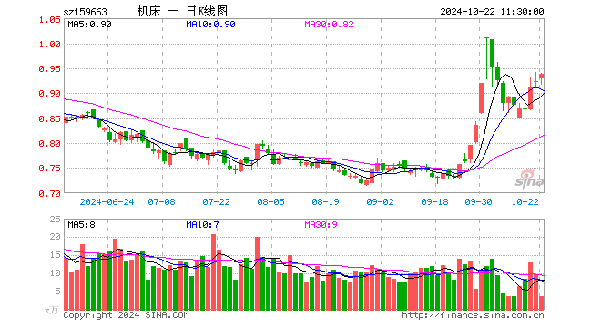 10月22日,截止午间收盘,机床ETF(159663)涨1.52%,报0.937元,成交额341.12万元。机床ETF(159663)重仓股方面,华工科技截止午盘涨1.06%,大族激光涨1.85%,豪迈科技涨1.39%,厦门钨业涨1.13%,中航高科跌1.93%,汇川技术跌0.79%,柏楚电子跌1.11%,江特电机涨1.69%,华明装备涨4.09%,创世纪涨0.00%。
