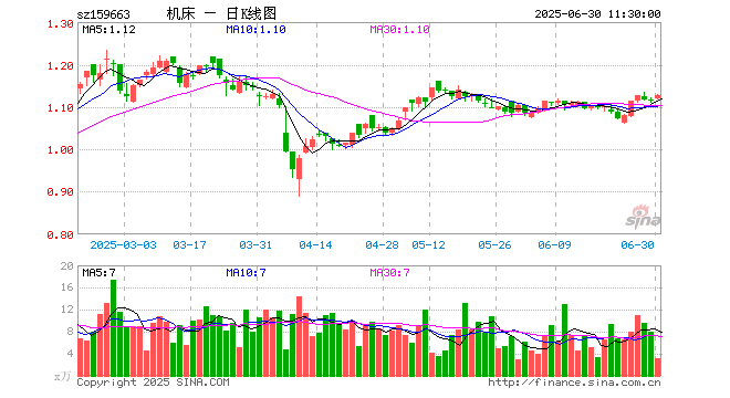 6月30日,截止午间收盘,机床ETF(159663)涨1.08%,报1.126元,成交额340.72万元。机床ETF(159663)重仓股方面,华工科技截止午盘涨1.58%,豪迈科技跌0.03%,大族激光涨1.25%,汇川技术涨1.03%,厦门钨业涨0.43%,中航高科涨6.02%,绿的谐波涨0.63%,创世纪涨0.74%,柏楚电子涨0.37%,江特电机跌0.55%。