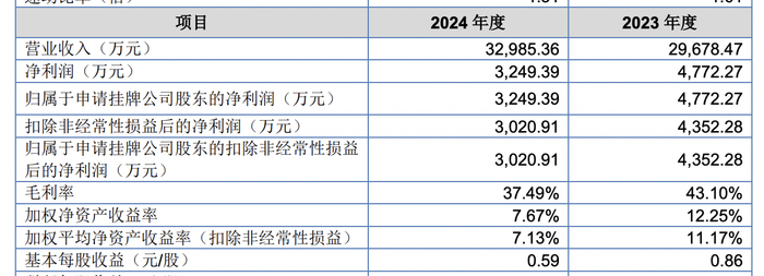 2023年、2024年,森泰英格营业收入分别为2.97亿元、3.3亿元;净利润4772.27万元、3249.39万元;毛利率分别为43.1%、37.49%。