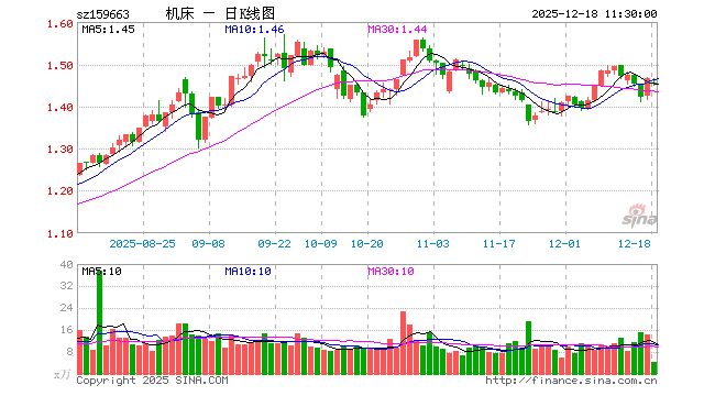 12月18日,截止午间收盘,机床ETF(159663)跌0.75%,报1.454元,成交额612.12万元。机床ETF(159663)重仓股方面,华工科技截止午盘跌1.80%,大族激光跌1.14%,厦门钨业跌2.02%,汇川技术跌0.14%,绿的谐波跌0.76%,中航高科涨1.75%,柏楚电子跌1.85%,豪迈科技跌2.12%,创世纪涨1.14%,江特电机跌0.53%。