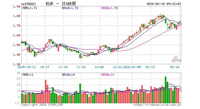 机床ETF(159663)业绩比较基准为中证机床指数收益率,管理人为华夏基金管理有限公司,基金经理为司帆,成立(2022-10-12)以来回报为73.18%,近一个月回报为3.43%。